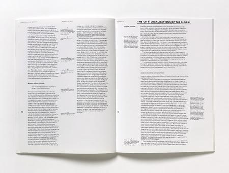 A diagram of the content, showing the length of each article and its particular word frequencies, is splited into two diagrams: one on the very thin dust jacket and the other on the cover. The design is incomplete without actual juxtaposition of these two materials.